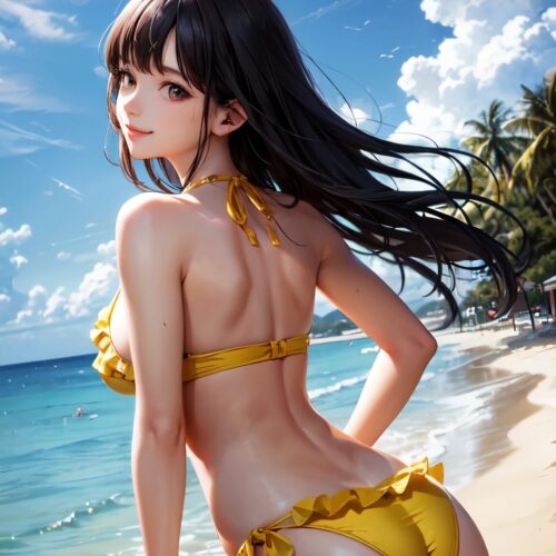 ビーチで下着グラビア撮影をしている美少女